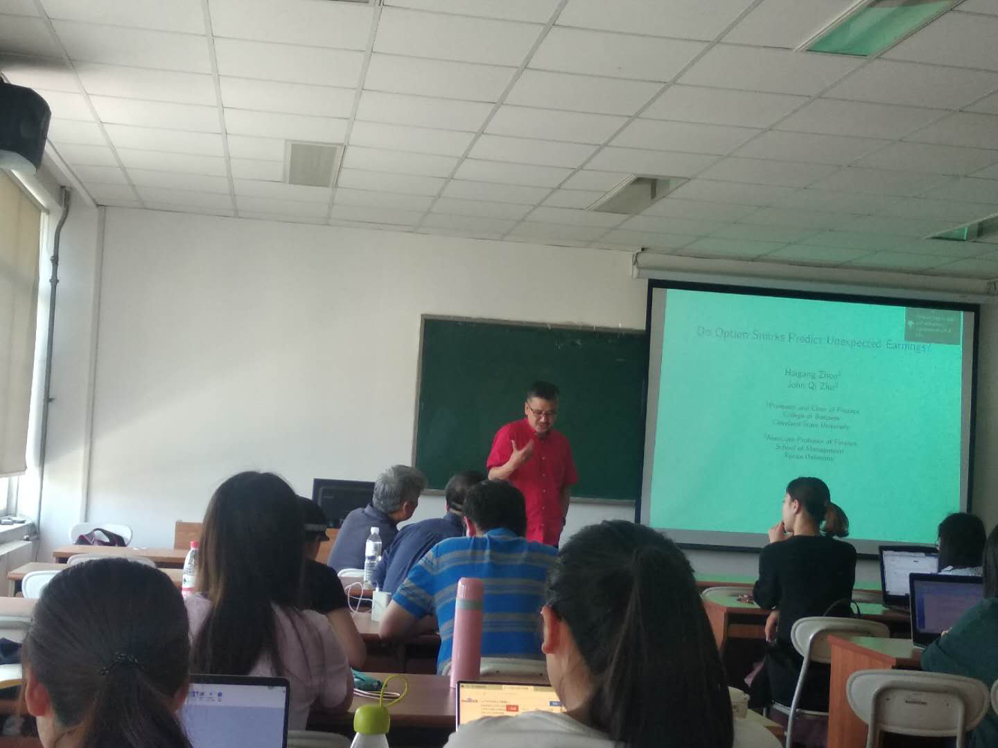 2019年5月28日下午,周海刚教授应邀到云开官网开展学术交流与指导,并做客kaiyun云开登录入口2019第12期“经济学名家讲堂”,为师生做了《Do Option Smirks Predict Unexpected Earnings》的精彩学术报告。