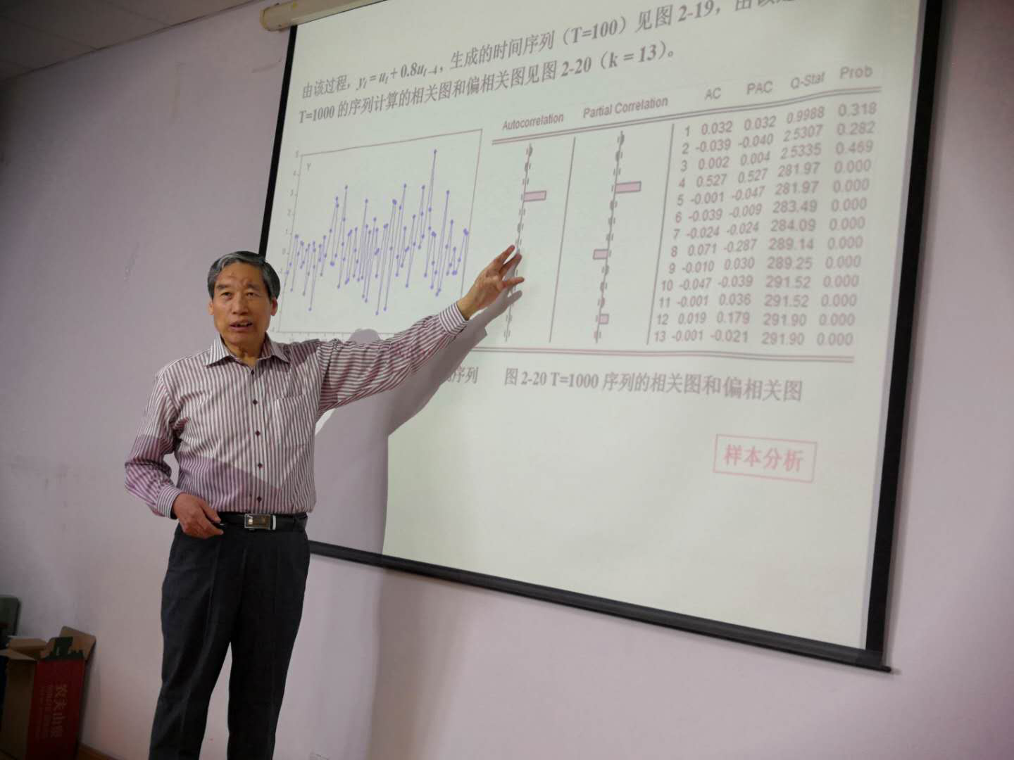 本次讲座主要分为两部分,第一部分是关于结构突变检验和结构突变序列的单位根检验;第二部分是关于regARIMA模型和季节ARIMA模型的建模及应用。张教授首先讲述了结构突变模型、ARIMA模型的定义、分类;判断模型类型的自相关函数和偏自相关函数;其次在模型的识别、拟合、检验、预测等方面,结合具体实例做了全面解析。张晓峒教授在授课过程中深入浅出,通过理论分析与实际案例数据运算的结合,对模型的原理、计算过程及实证结果做出了细致而全面的推解与演示。在场师生认真听取课程内容,并与张教授展开了热烈的讨论。针对于此次讲座,师生们普遍反映收获丰硕。