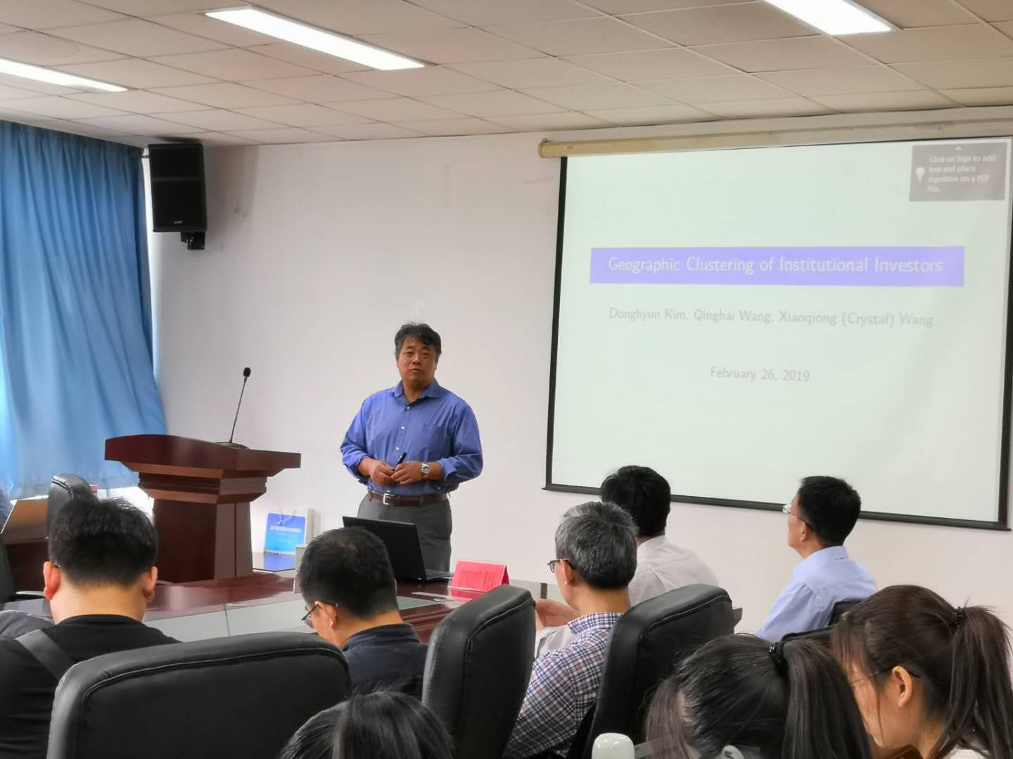 2019年6月14日上午,QINGHAI WANG教授应邀到云开官网开展学术交流与指导,并做客kaiyun云开登录入口2019第15期“经济学名家讲堂”,为师生做了《Geographic Clustering of Institutional Investors》的精彩学术报告。