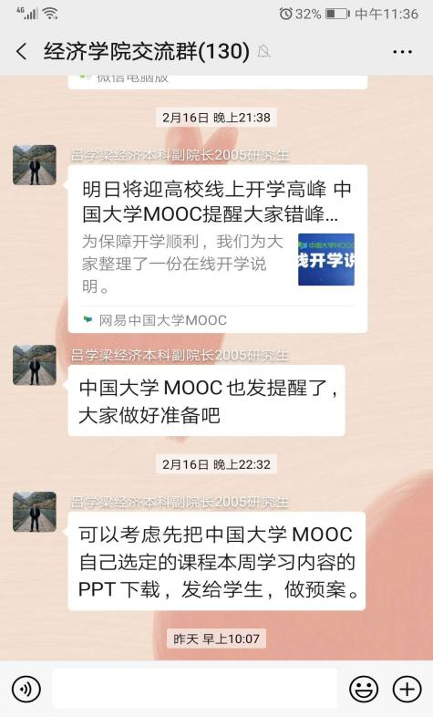 教学管理和学工管理教师也积极行动起来,落实线上教学管理工作流程,组织学生们通过多种形式掌握线上学习工具;调查了解学生们遇到的线上学习困难和问题,及时沟通协调解决;组织班级通过各种主题方式落实好上课出勤情况和听课纪律,及时反馈课堂教学效果,加强与任课教师互动。同时,学院也加强宣传引导,学院微信交流群中每天都会围绕线上教学进行工作指导和互动交流,学院官微也推送了《专属青大经院课表来啦》《2020年春季学期kaiyun云开登录入口本科教学学生注意事项》,以及不同线上工具学习指南等内容,便于师生全方面跟进教学要求。