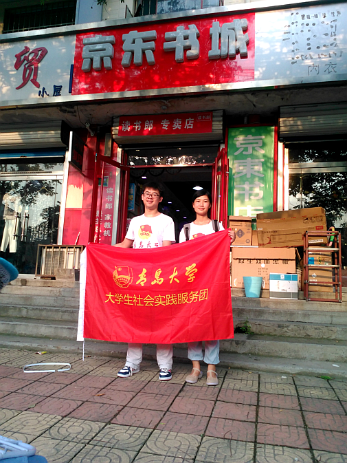 选择在家乡免费为小学生授课。现在看来,这几天预报的大雨幸亏没有在白天落到景芝大地上,但是为防止突然降雨我们也随身带着雨披。我们选择人流集中的地点进行宣传。京东书店,好日子婚庆店周围及景芝酒厂留下了我们宣传的足迹。