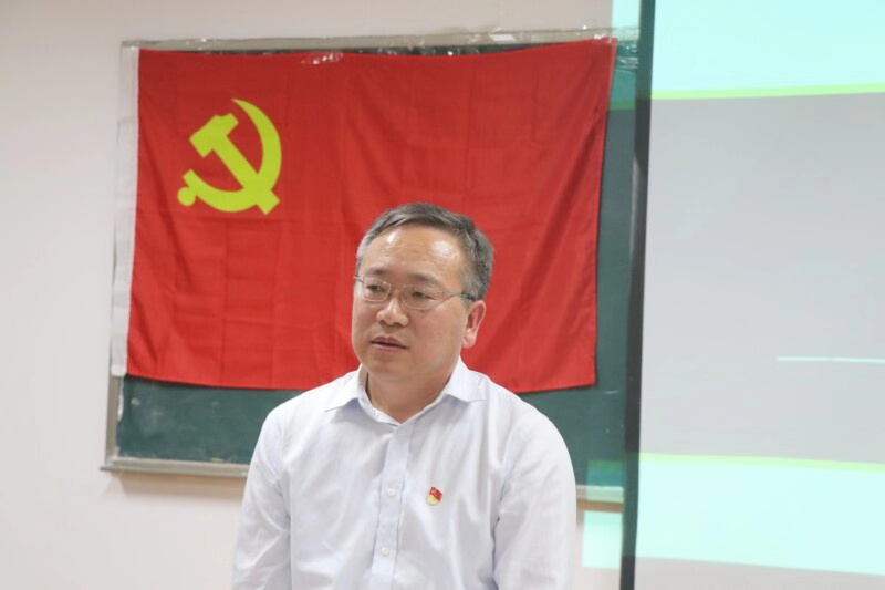 活动第二阶段,邀请到校党委组织员李同林为大家作"不忘初心、牢记使命"主题党性教育。他分析了当今国际形势特点,回顾了我国98年光辉历程取得的伟大成就。他强调,学生党员要做到永远不忘入党初心,将习近平新时代中国特色社会主义思想内化于心、外化于行,随时严格要求自己,做品学兼优的标杆,铭记自己肩负的光荣使命,努力把自己培养成为能够担当民族复兴大任的时代新人。