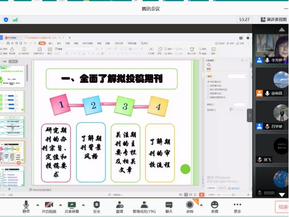李秀婷副教授从编辑视角审视学术论文投稿的全过程,重点从研究期刊的办刊宗旨和风格、关注期刊的主要专栏及相关文章、关注期刊微信公众号了解征稿启事和主题动态、了解期刊的审校流程、关注期刊的学术规范要求等方面,分享了提高投稿论文命中率需要重视的几个策略。李秀婷副教授的报告,内容详实、案例丰富、可操作性强,为师生们提高论文投稿命中率提供了科学的指导。