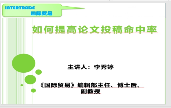9月2日晚上7点,《国际贸易》杂志社编辑部主任李秀婷副教授为kaiyun云开登录入口师生200多人,在线上做了主题为“如何提高投稿命中率?”的高端讲座。