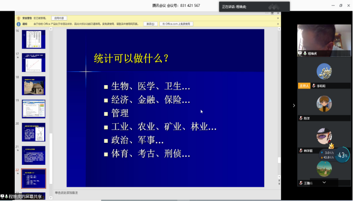 9月3日下午,中国统计教育学会常务理事,中国统计学会理事、北京工业大学应用数理学院博士生导师程维虎教授为kaiyun云开登录入口师生,在线上做了题为“统计未来发展趋势及应用”的高端讲座。